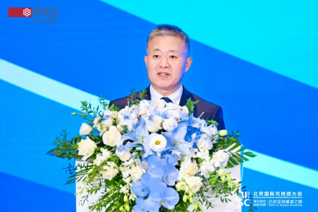 11月21日,由国际财务报告准则基金会(ISSB)主办,中国中车集团有限公司承办,中国建设银行、中央国债登记结算有限责任公司等多家企业和媒体支持的北京国际可持续大会(2024)在京成功召开。本次大会以“融合趋同创新发展迈进全球基准之路”为主题,深入讨论范围三排放的信息披露对企业的重要意义、以及核心企业在推动其价值链转型中所发挥的关键作用。中国企业改革与发展研究会会长、国务院国资委原党委委员、秘书长彭华岗,国际可持续准则理事会主席范易谋(EmmanuelFaber),特许公认会计师公会会长麦安盈(AylaMajid)等嘉宾参会并作主旨分享。近200名嘉宾代表参会,全球500余万人次观看线上直播。中国中车总裁马云双、副总裁王锋、总部有关部门负责人及部分子企业主要领导受邀出席。