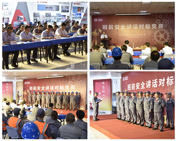 “安全第一,时刻牢记”、“质量在手,安全在心”......9月11日下午,中车石家庄公司员工大课堂传出阵阵铿锵有力的喊话声,一场别开生面的班前安全讲话对标竞赛活动在这里精彩举办。公司党委书记、董事长王华,总经理张建武等公司领导,相关部室及参赛单位的第一管理者出席活动并担任评委。