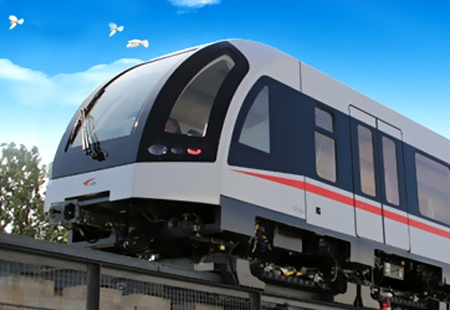 中车株洲电力机车有限公司2012年1月自主研制成功的国内首列可商业化运营的中低速磁浮列车,应用电磁悬浮导向与直线电机牵引技术。列车为3节编组,最高运行速度100公里每小时。