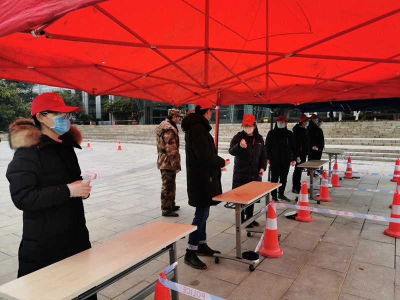 2020年,研究院团委在株洲所园区,开展体温测量志愿活动